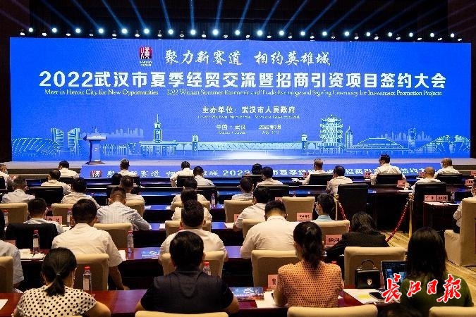 9日,2022武汉市夏季经贸交流暨招商引资项目签约大会在武汉会议中心举行。 记者任勇 摄