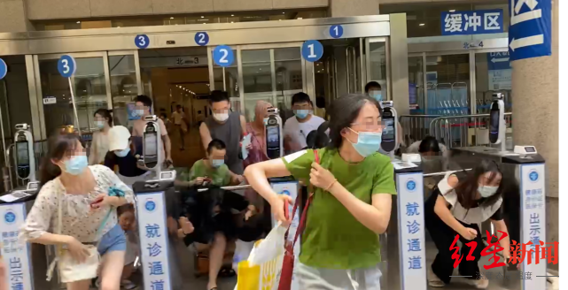 瑞金医院工作人员小玉(化名)告诉红星新闻记者,事发时,她拿好外卖,走进门诊大楼。她看到,一群人从二楼跑下来,口中喊着“快逃快逃,有人砍人”。