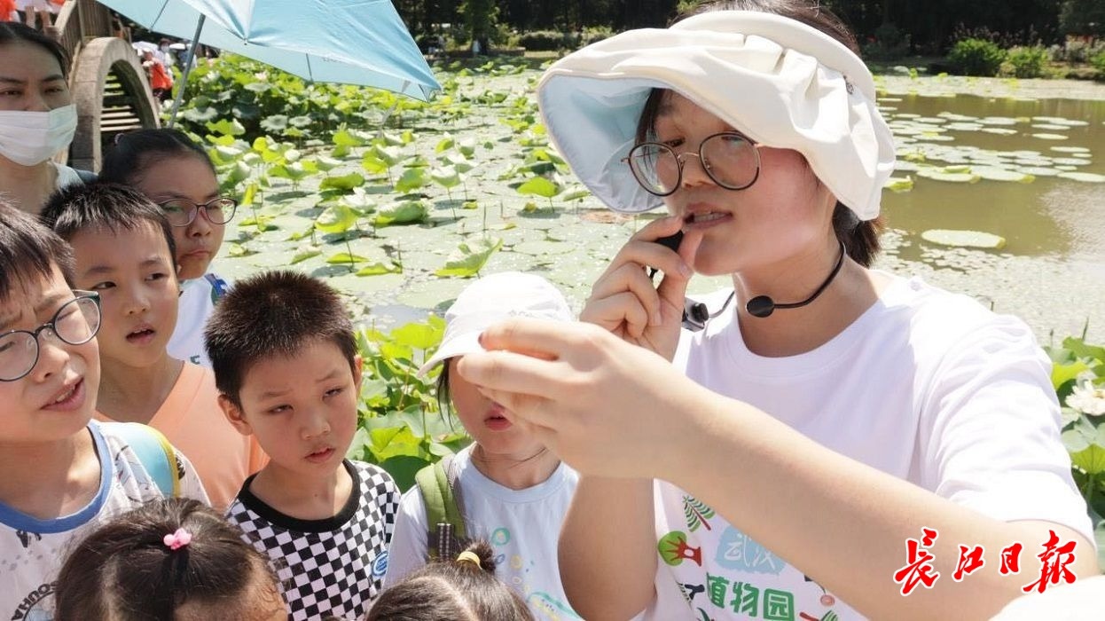 长江日报大武汉客户端7月9日讯 怎么样的莲子最好吃?荷叶为什么“出淤泥而不染”?荷花茎竟然还可以吹泡泡?9日上午,一堂户外荷花科普课在中科院武汉植物园荷花展示区开讲,在植物导师的带领下,小朋友们学到了不少荷花冷知识。