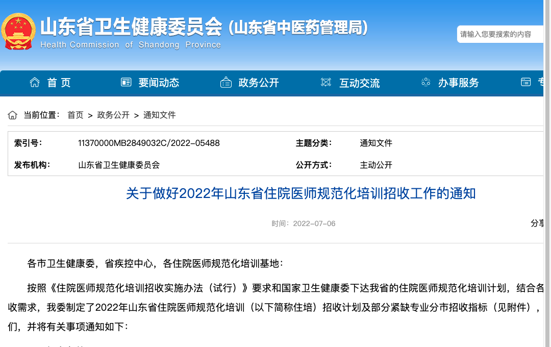 7 月 6 日,山东省卫健委《关于做好 2022 年山东省住院医师规范化培训招收工作的通知》,其中明确指出:从 2020 年起,所有新进医疗岗位的本科及以上学历临床医师均接受住院医师规范化培训。我委将积极协调相关部门,继续将住培合格证书作为晋升中级职称的必要条件,推动住培合格证书作为晋升高级职称的必备条件。(来源:山东省卫生健康委员会)