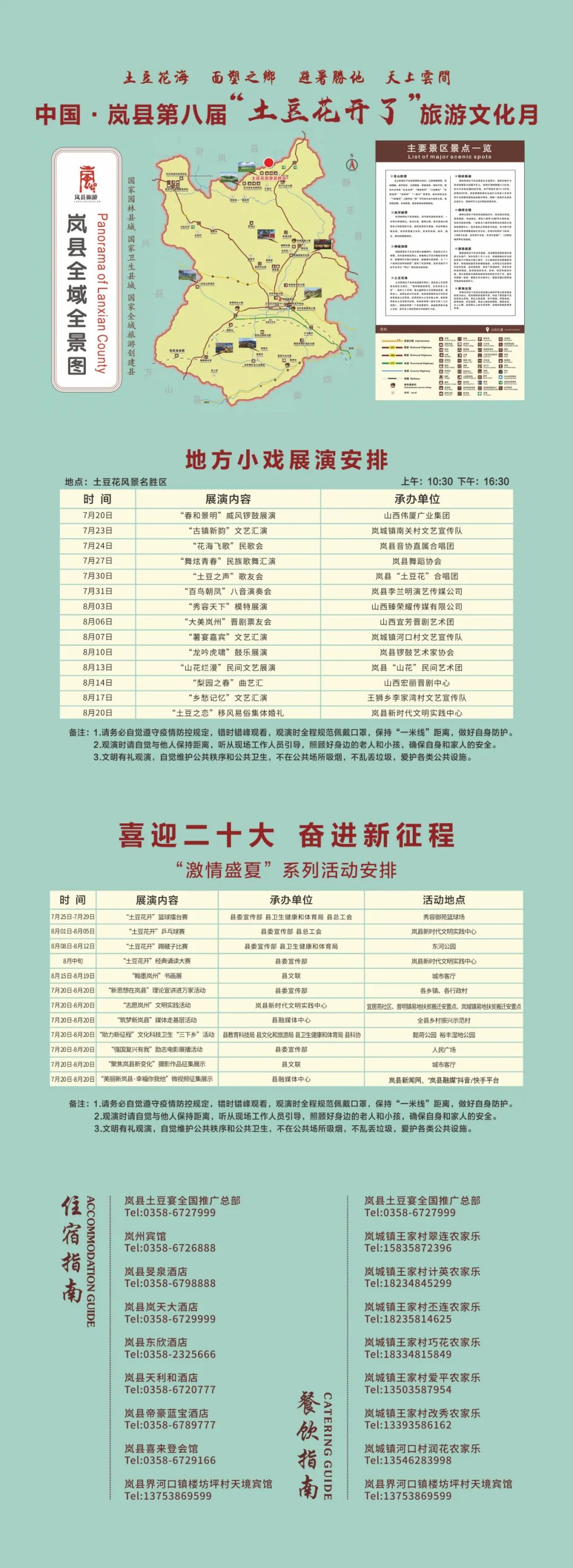 为进一步丰富人民群众精神文化生活,提升岚县土豆花风景名胜区品牌知名度和影响力,经县委、县政府研究决定,举办2022年中国·岚县第八届“土豆花开了”旅游文化月活动。
