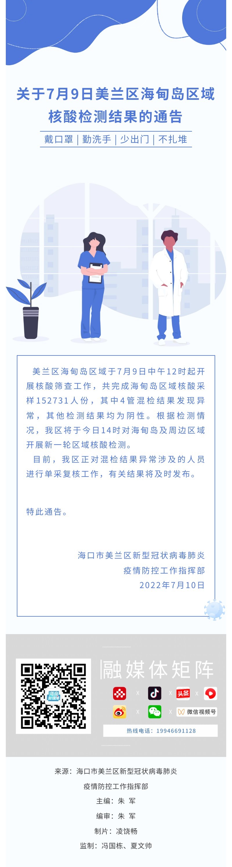 关于7月9日美兰区海甸岛区域核酸检测结果的通告