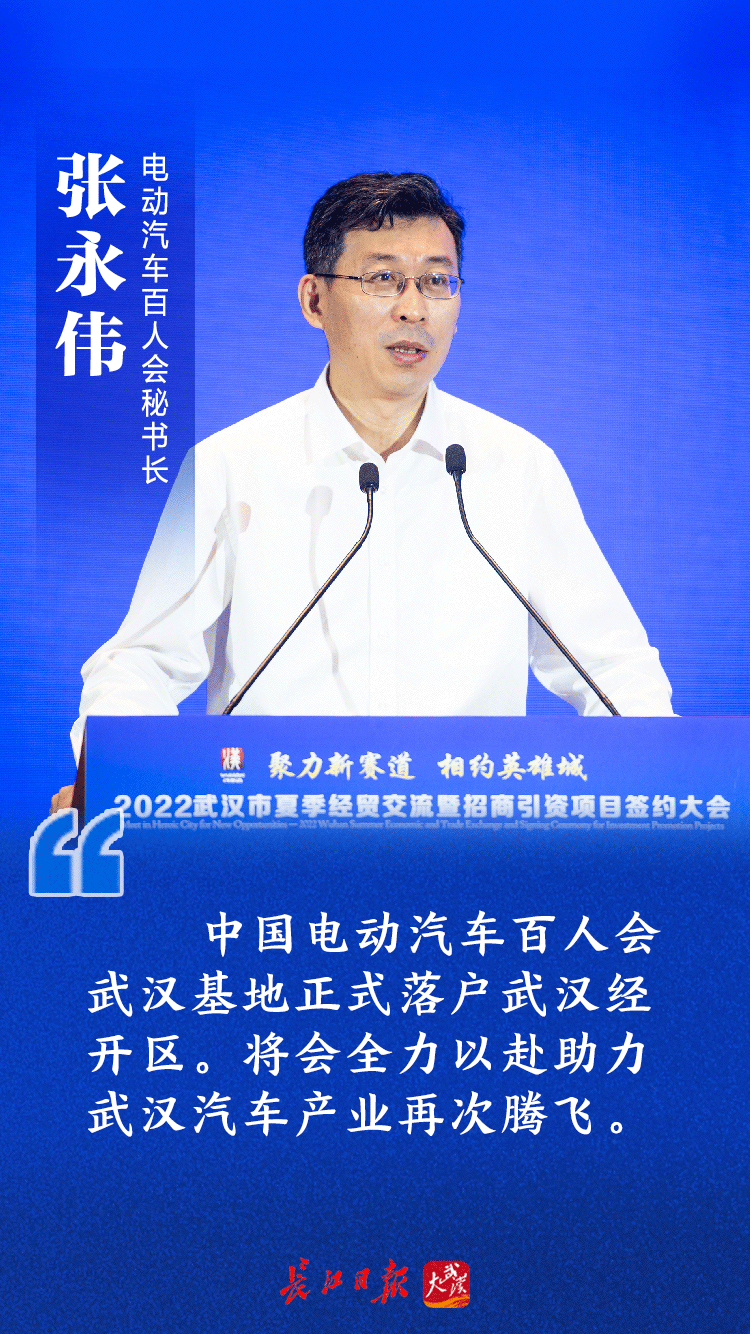 也是这场大会上,中国电动汽车百人会副理事长兼秘书长张永伟宣布,中国电动汽车百人会武汉基地正式落户武汉经开区。