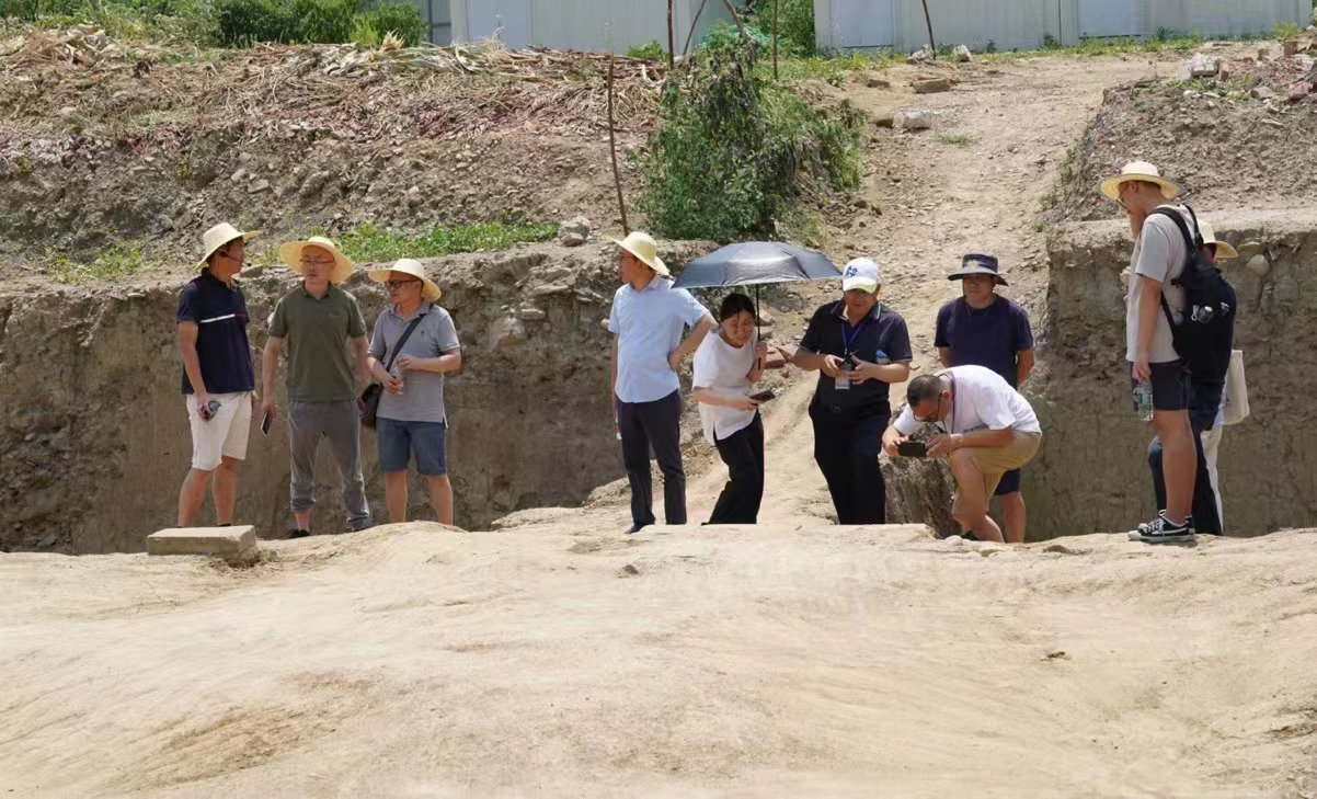 下午,顶着炎炎烈日,专家学者们在成都文物考古研究院院长颜劲松的带领下走进了汉代“新都城”遗址。专家们走上汉代城墙,发掘现场负责人杨洋为大家详细介绍了该处遗址的发掘经过,以及现场的遗迹现象。专家学者们走近汉代历史的同时也深深也体会到考古工作者在酷暑天气里做发掘工作的艰辛和不易。