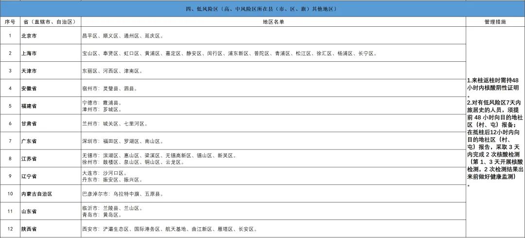 一、对7天内有中、高风险区所在县(市、区、旗)旅居史的人员,来桂返桂时需持48小时内核酸阴性证明。