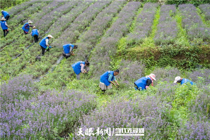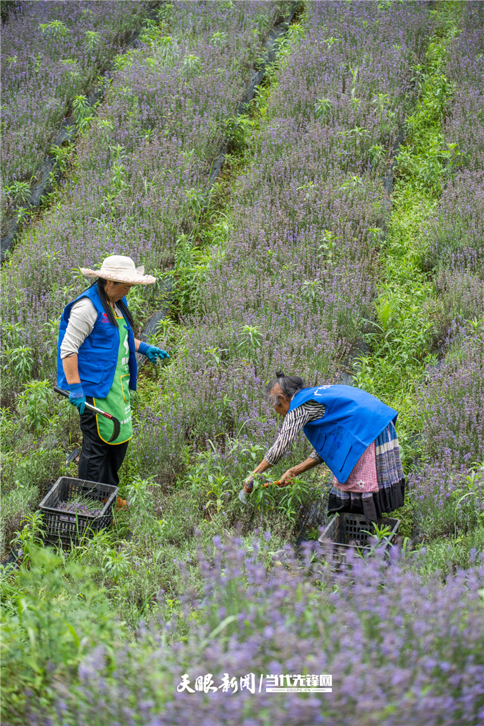 在纳雍县厍东关乡李子村广汽集团援建的芳香产业基地,村民正在采收成熟的薰衣草(通讯员 罗大富 摄)