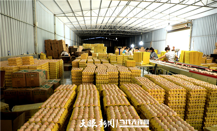 七星关区撒拉溪镇盛园蛋业蛋鸡养殖基地,工人正在装箱,这些鸡蛋将销往大湾区(贵州日报天眼新闻记者 汪瑞梁 摄)