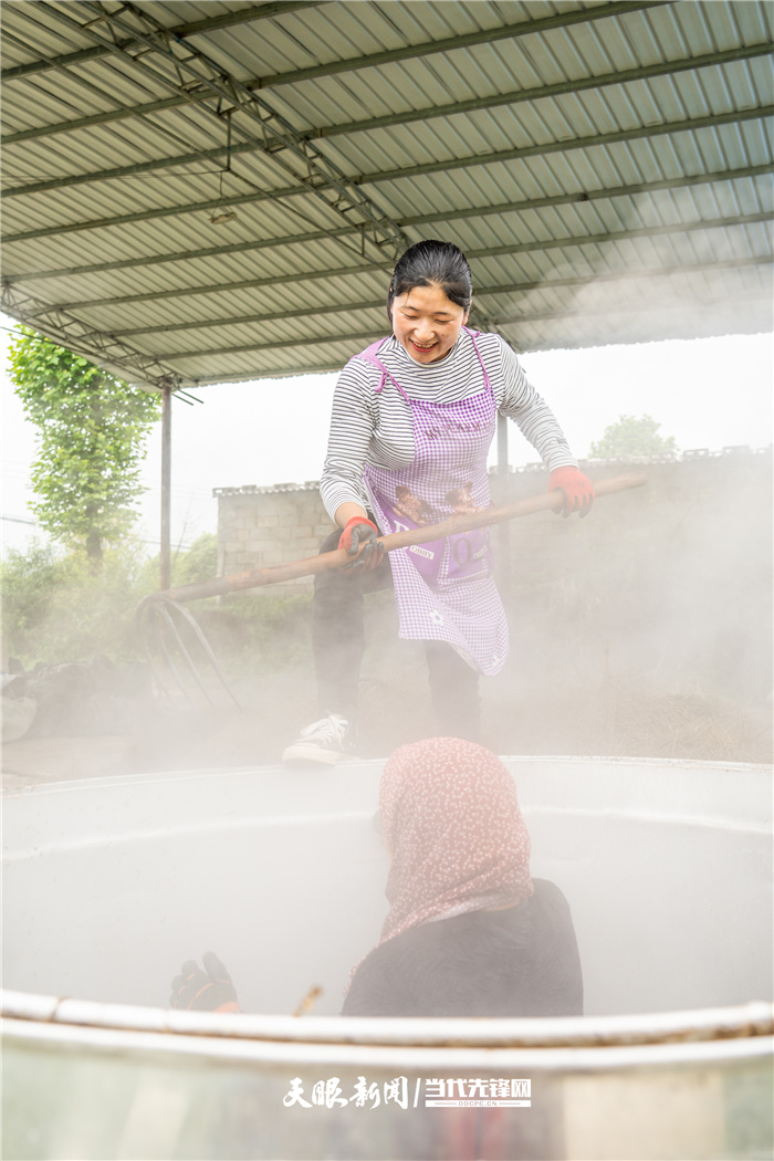 在赫章县兴发乡中寨村,广州港华农业科技有限公司投资打造的芳香产业基地里,村民正在捞出提炼过的薰衣草(通讯员 罗大富 摄)