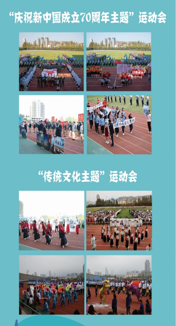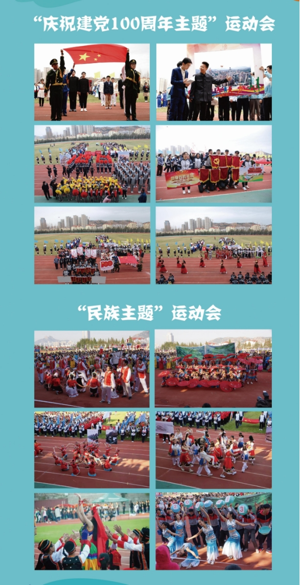 学校坚持把社会主义核心价值观贯穿学校育人全过程,学校运动会设计了“庆祝中华人民共和国成立70周年”“庆祝中国共产党成立100周年”“城市”“民族”“国家”“传统文化”等系列主题开幕式。