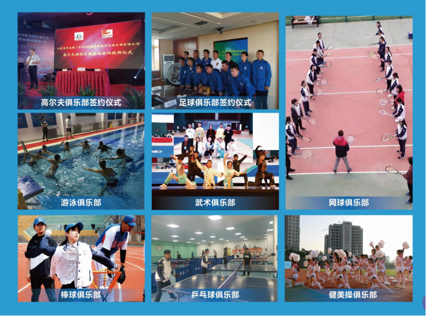 建立校级体育俱乐部16个,包括足球、篮球、排球、羽毛球、乒乓球、网球、棒球、游泳、武术、健身、健美操、轮滑、高尔夫、攀岩、国际象棋、围棋,将体育课程与体育俱乐部有机融合。