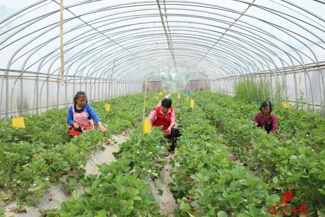 礼泉县沃野青青现代农业园区内,工作人员正在采摘草莓。咸阳日报全媒体记者 王晓田 摄(资料图)
