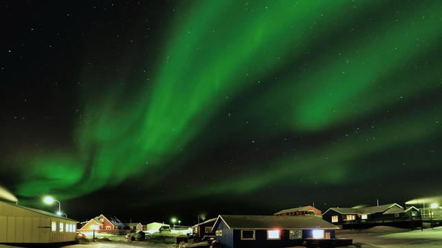 冬日里,从伊卢利萨特冰峡湾登上游船出海,站在船边,你能看到船头一路碾压着浮冰前行,冰块“噼哩啪啦”的破碎声不绝于耳。不远处,许多水鸟时而站在浮冰上扑腾觅食,时而围着过往的船只展翅翻飞。岸边高高低低散落的民居都漆了明艳的颜色,红的蓝的黄的,在这四野茫茫的极寒之地,如童话般的小木屋是唯一让人感到温暖的所在。