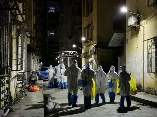 凌晨2点左右,志愿者在中风险区开展敲门行动,通知所有人员立即下楼做核酸检测。检测过程中,医护人员身着防护服,严格按照采样流程规范操作,市民佩戴口罩、保持间距、依次排开,进入指定登记点和采样点,有序进行核酸检测,配合医护人员采样,检测完成后有序离场。