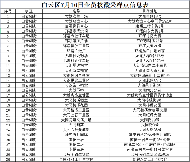 白云区关于7月10日开展全区大规模核酸筛查工作的通告