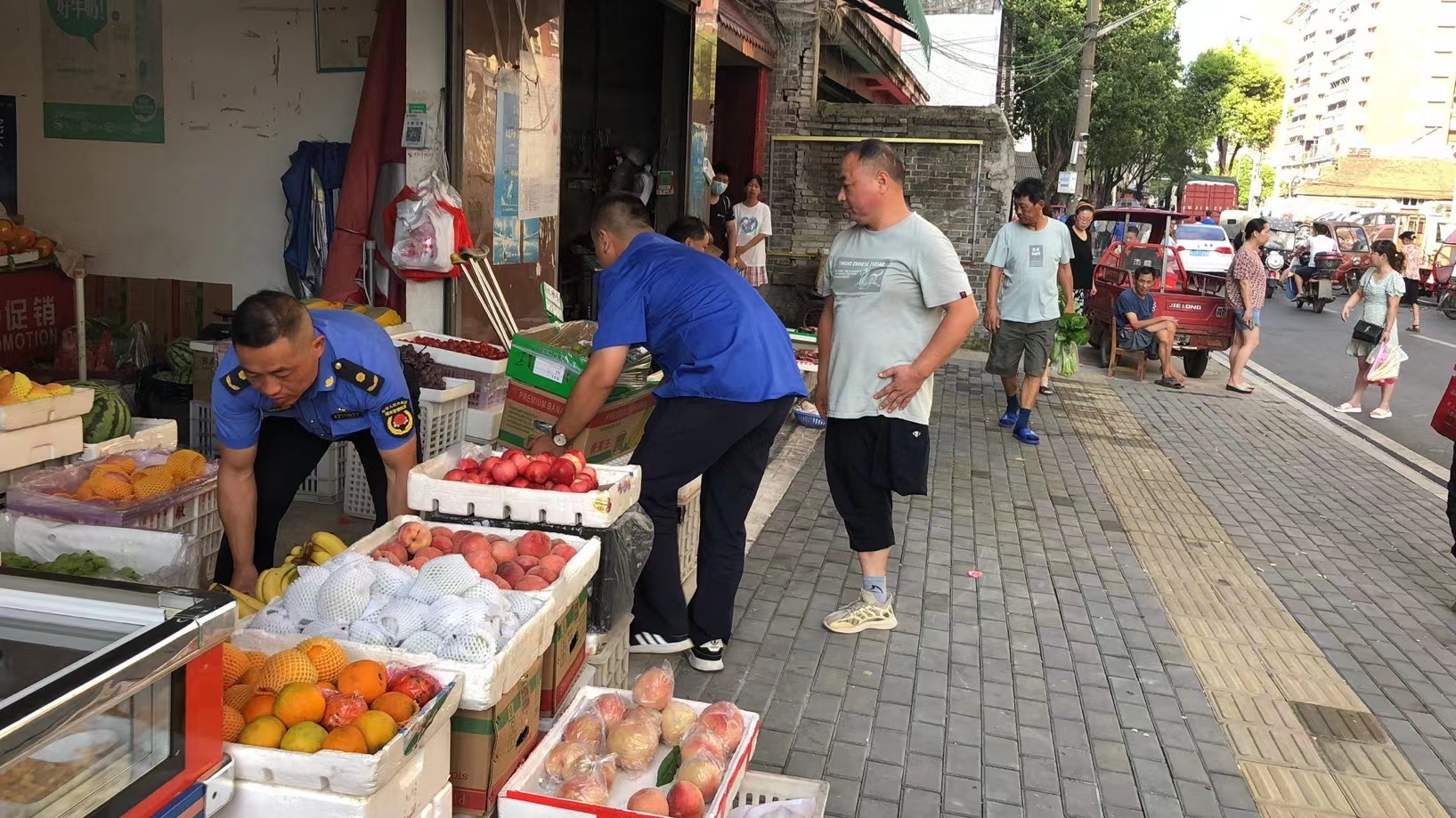 “得胜大道几家水果店把路挡完了,推个自行车都出不去了”、“乱七八糟的东西到处都是乱哄哄的”,途经过往这一段路的市民个个是怨声载道。由于周边水果店比较集中,现在成为了水果批发生意的集散地。占道经营成为了“老大难”问题,群众是投诉不断。为了彻底解决这一“城市顽疾”,该局城管执法大队痛下决心,坚决整改到位,真正做到还路于民。