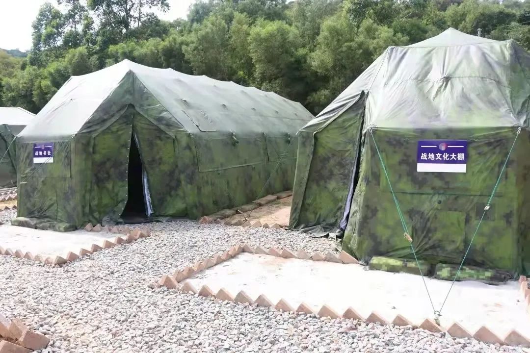 搭设帐篷、整理装备······来到驻地场,顾不上休息,官兵们各司其职,顶着烈日搬运装备,开山劈路。一顶顶帐篷拔地而起,各岗位人员随即进入战位,迅速展开各项驻训工作。