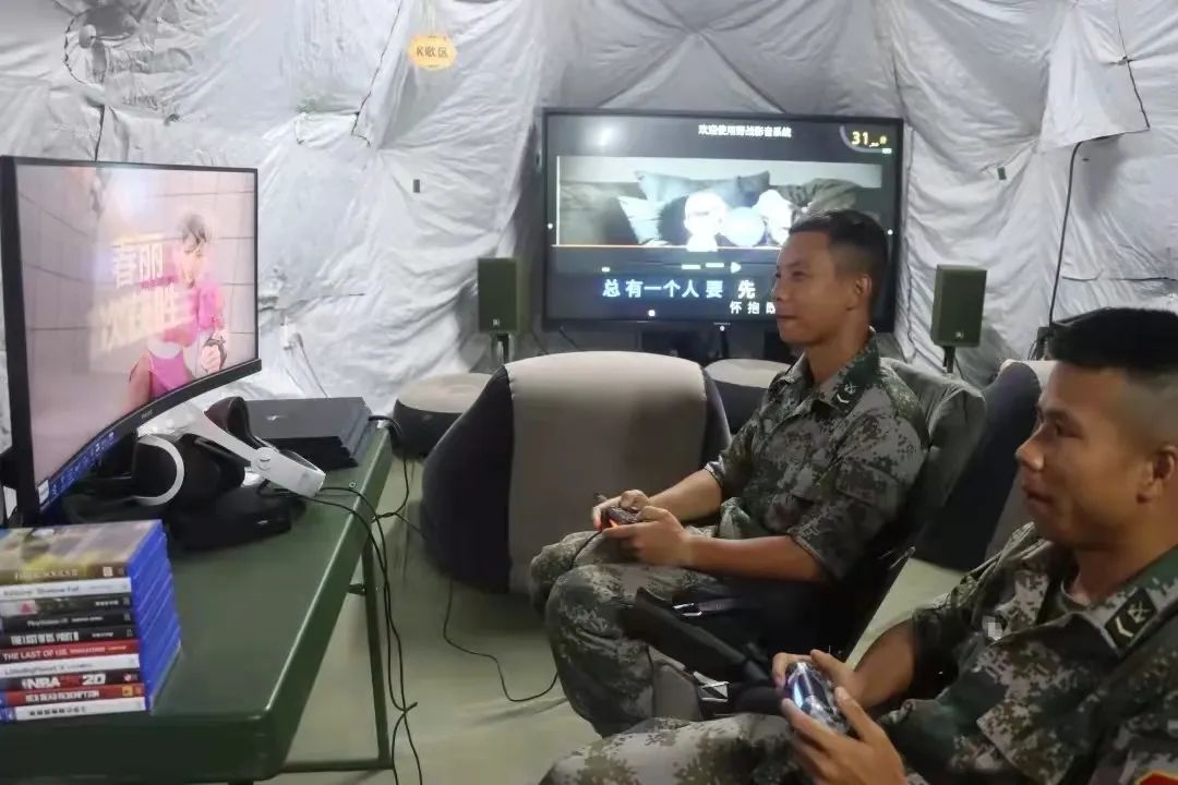 驻训任务繁忙且充实,为能让官兵在执行任务的同时得到适当休息,“战地文化大棚”和“战地书社”随即便搭建而起。文化大棚内桌游、军营KTV、游戏机一样不少,同样书社也内藏马列经典、文学类、散文类等书籍。闲暇之余,官兵可以在这放松身心、调节释压。