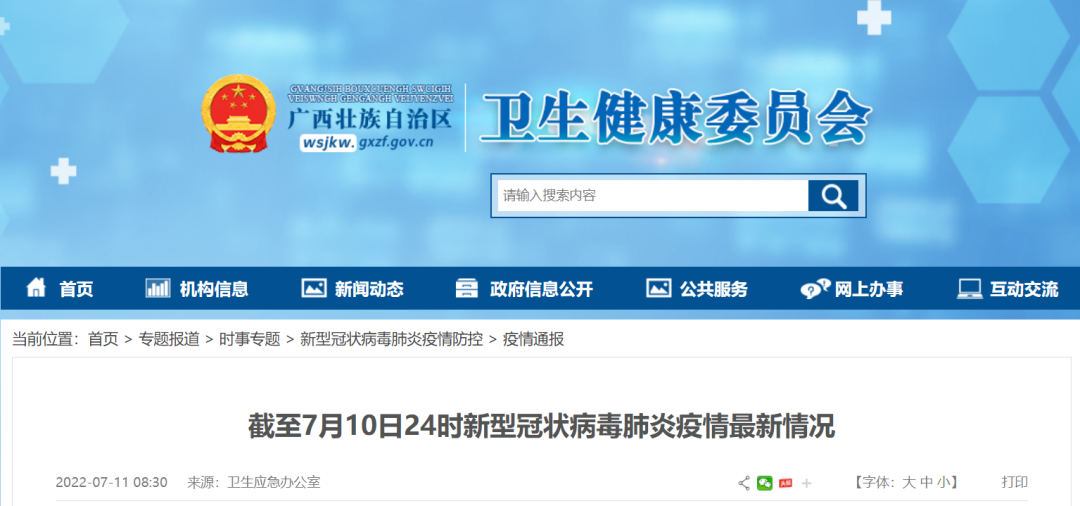 7月10日0-24时,广西新增本土无症状感染者3例(均在防城港东兴市)。当日解除隔离医学观察本土无症状感染者1例(防城港市)。截至7月10日24时,全区现有本土无症状感染者16例(均在防城港市)。