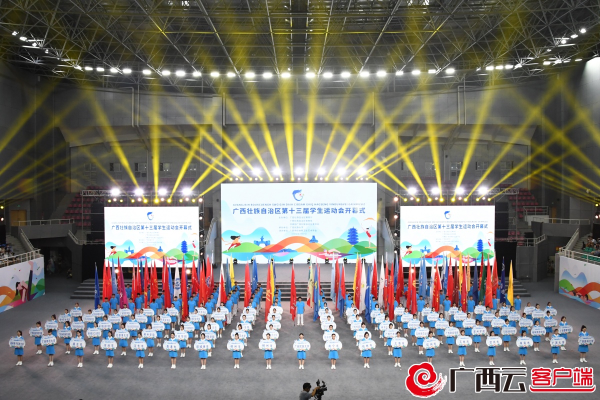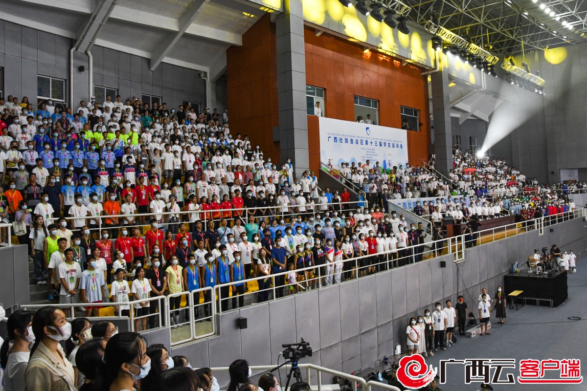 7月9日晚,广西壮族自治区第十三届学生运动会在广西民族大学思源湖校区开幕。