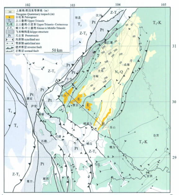长期的海侵和海退以及地表径流不仅给四川盆地带来了大量盐分,而且还提供了大量陆源碎屑,晚三叠世以后,四川盆地内沉积了厚度超过1000m陆源碎屑岩层,厚实的陆源碎屑岩层形成了良好的封闭层,古卤水得以浓缩聚集并保存下来。同时,古卤水在渗入地下时受高温高压影响,卤水受溶滤作用、地下蒸发作用等过程,成分得到纯化,矿化度进一步升高。