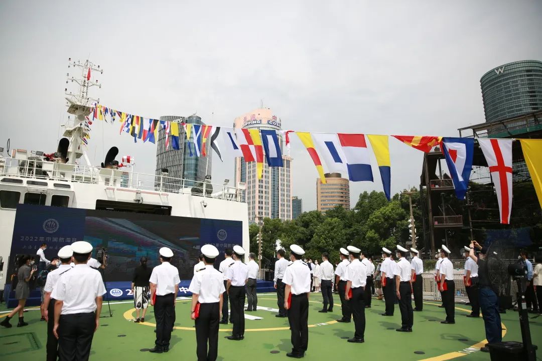 伴随着国旗的冉冉升起,7月11日上午,2022年“中国航海日”上海主题活动启动仪式在上海港国际客运中心举行。相关政府部门、企业机构和优秀海员代表参加仪式,共同庆祝第18个中国航海日。
