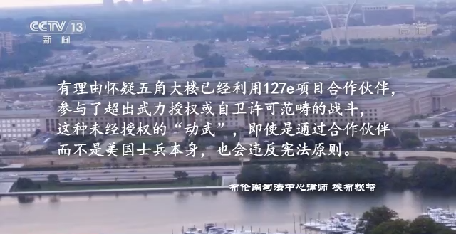 “有理由怀疑五角大楼已经利用127e项目合作伙伴,参与了超出武力授权或自卫许可范畴的战斗,这种未经授权的‘动武’,即使是通过合作伙伴而不是美国士兵本身,也会违反宪法原则。”