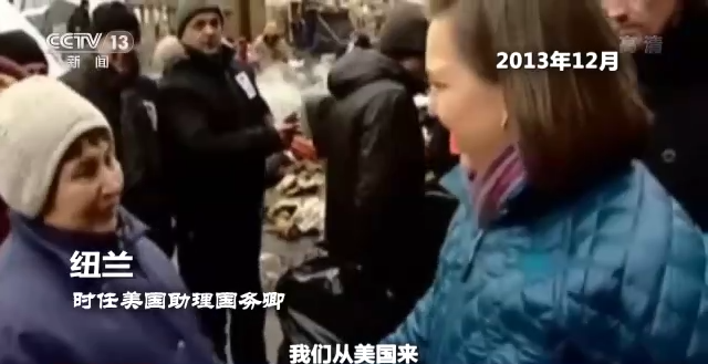 2013年底,有“女版蓬佩奥”之称的时任美国助理国务卿纽兰现身基辅独立广场,为抗议者分发小饼干。