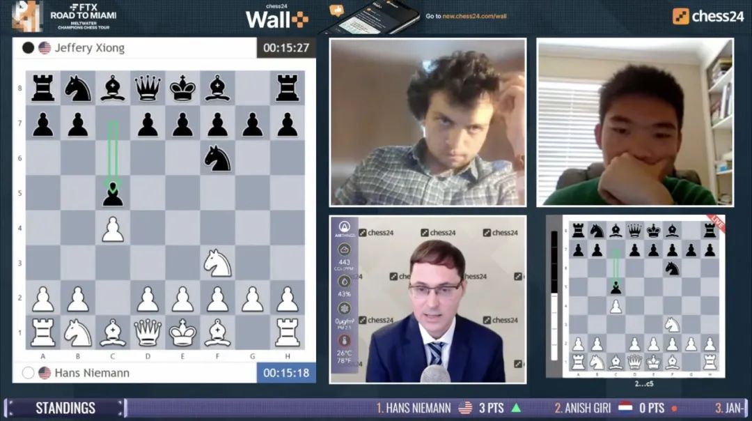 北京时间7月11日凌晨,2022Meltwater冠军网络巡回赛第五站比赛 - “FTX 迈阿密之路锦标赛”在chess24平台结束了预赛首日比赛。美国华裔棋手熊奕韬以9分独自领跑。韦奕以8分列积分榜第二集团。女子世界冠军居文君暂积3分。