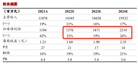 王华君看好三至五年后公司会变成中国工业气体行业的龙头,预计2022-24年归母净利润为15.7/18.7/23.1亿元,同比增长32%/19%/24%,对应PE为21/17/14倍,给予6-12月合理估值为491亿元,现价50%以上空间。