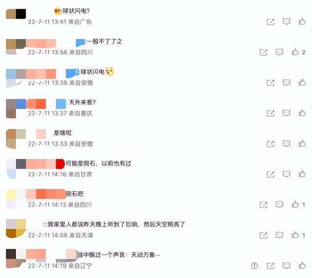 有网友评论:“我家里人都说昨天晚上听到了巨响,然后天空照亮了”。还有人称昨晚自己就看到了:“昨晚我看见了,速度特别快,我当时还以为是有人玩无人机,但是我玩过无人机,根本不可能飞那么快。让我站起来探头去看的时候已经不见踪影了”。