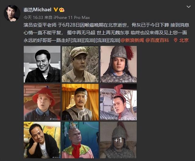 据演员秦浩透露,演员安亚平于6月28日因喉癌在北京病逝,骨灰已于7月10日下葬。安亚平毕业于北京电影学院,曾出演过不少经典作品,在《三国演义》中饰演“马超”,在《康熙王朝》中饰演“魏东亭”,还搭档过六小龄童出演《西游记续集》,在剧中饰演“鼍龙”。