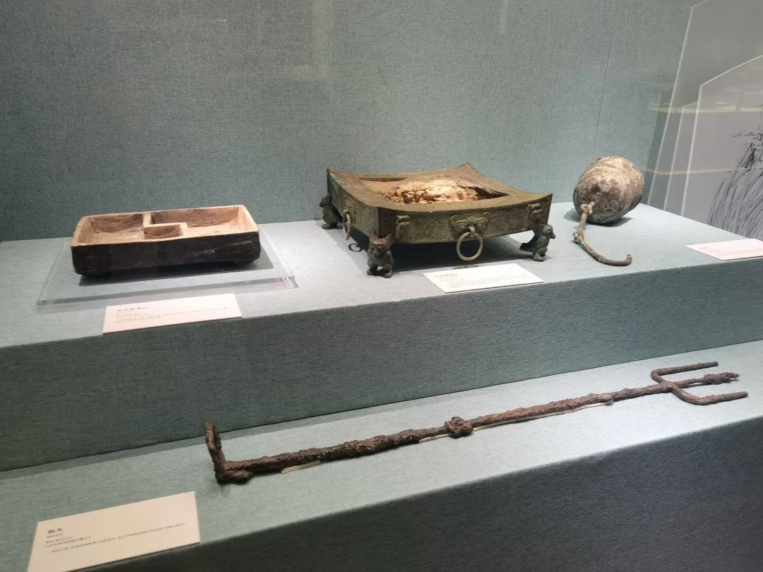 据考证,南越王酷爱烧烤,墓中出土了各式烧烤用具及4件大小不一的烤炉。其中,一件方形铜烤炉造型罕见,是极为珍贵的汉代烧烤器具实物。此外,铜挂钩也是“烧烤之友”,用于悬挂食物。使用时,将钩挂于高处,在铃内注水,然后将盛食物的器皿挂在钩上,可以防止蚂蚁爬下吃挂钩上的食物。粤语称之为“激(气)死蚁”。