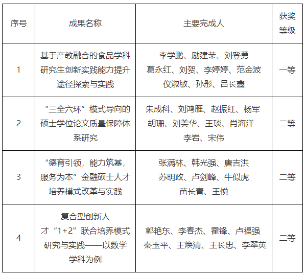 近日,辽宁省教育厅公布2022年辽宁省研究生教育教学成果奖获奖名单,渤海大学推荐的4项研究生教育教学改革成果全部获奖,其中一等奖1项,二等奖3项。
