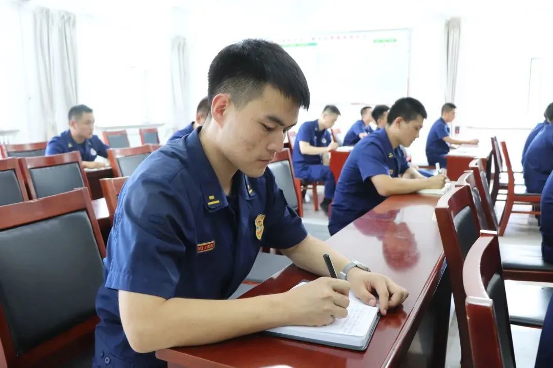 政治教育、理论学习、新闻宣传、体能训练和队列训练等课目是实习学员的“第三堂必修课”,从学习室到训练场,从内场业务学习到外场岗位实操,支队专门为实习学员量身制定了“强能套餐”夯实基础,通过业务结对师徒“带教”、体能定期考核验收的方式,不断夯实实习学员的综合能力素质。