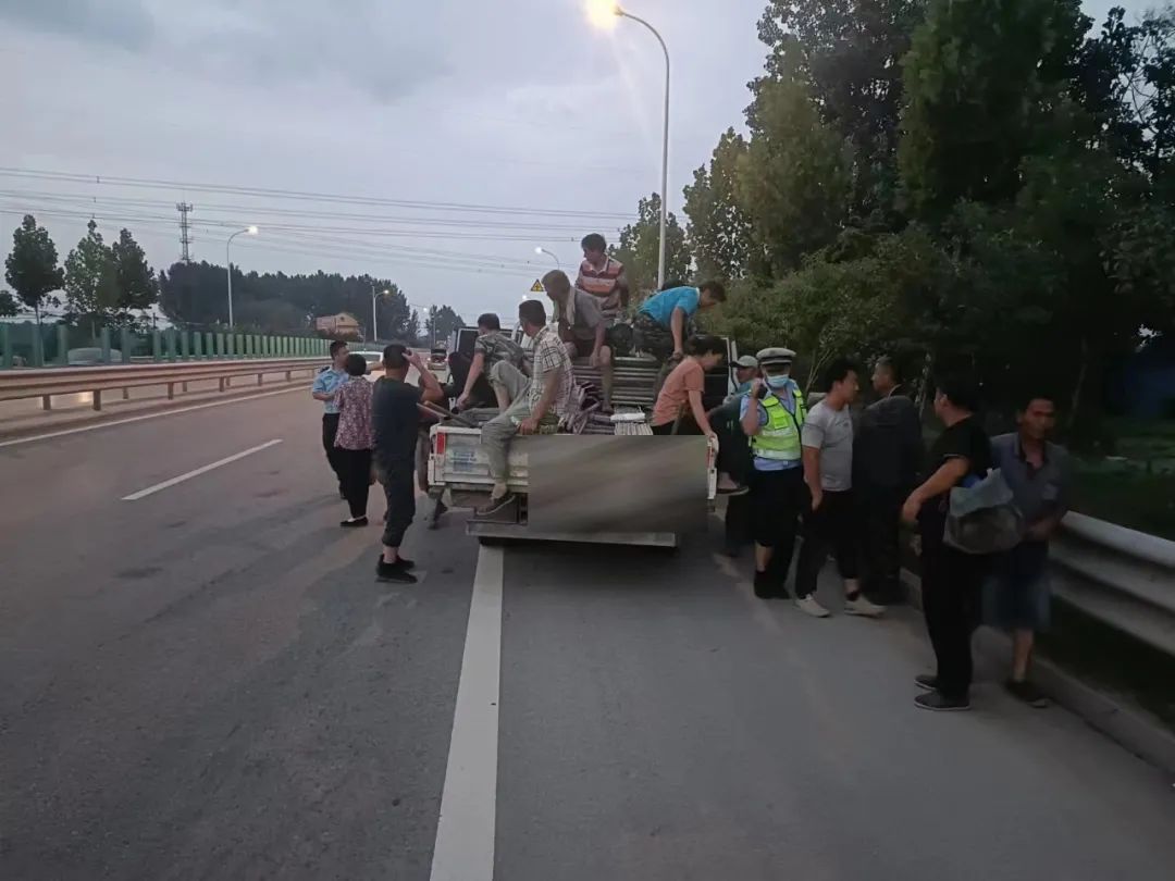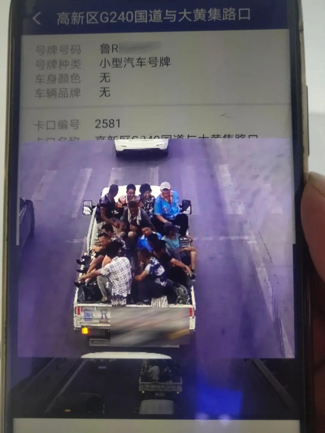 2022年7月9日19时许,菏泽高新区交警大队王浩屯中队的民警正在240国道巡逻时,发现一辆轻型厢式货车的后车厢里挤满了人,十分危险!