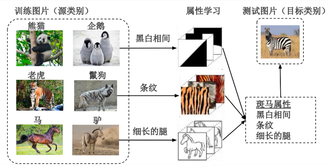 如上图所示,由于属性(attributes)能够被不同类别共享,促进了知识在类别间的转移,因此是使用最广泛的类别嵌入。并在其他计算机视觉任务(如面部识别、细粒度分类、时尚趋势预测)中被广泛用作辅助信息。