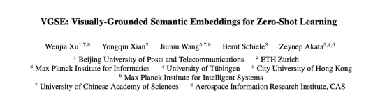针对以上问题,来自北京邮电大学、马普所等机构的研究者提出了类别嵌入发掘网络(Visually-Grounded Semantic Embedding Network, VGSE),本文主要回答了两个问题:(1)如何从可见类图像中自动发掘具有语义和视觉特征的类别嵌入;(2)如何在没有训练样本的情况下,为不可见类别预测类别嵌入。