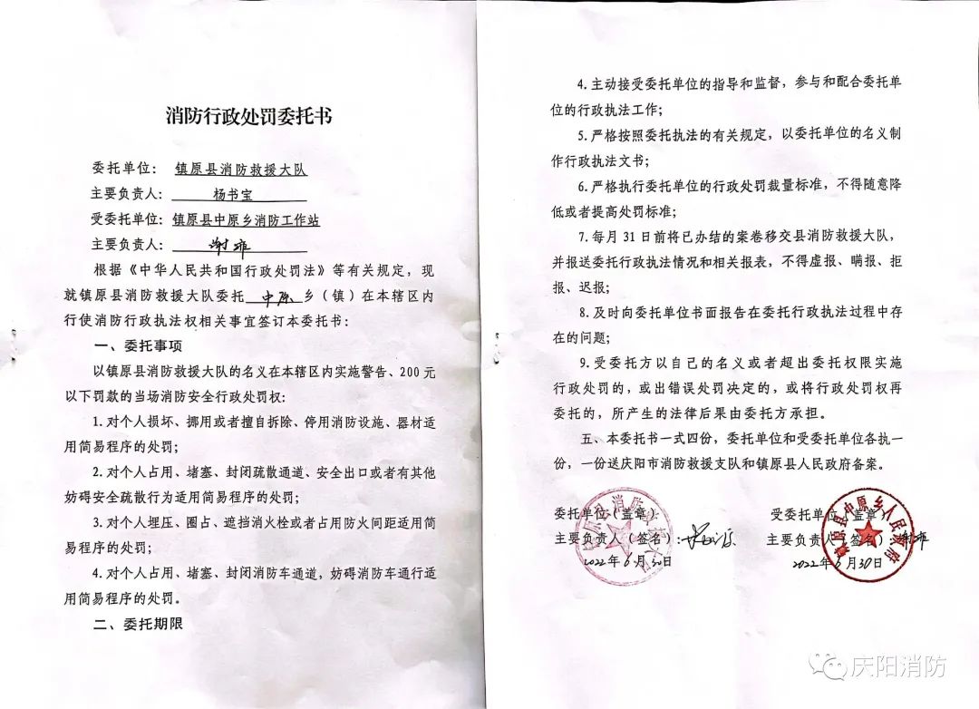 为了进一步规范消防行政执法工作,依法确立行政执法委托机关与受委托机关的权利义务,近日,镇原县消防救援大队陆续与全县19乡镇消防工作站签订消防行政处罚委托书。