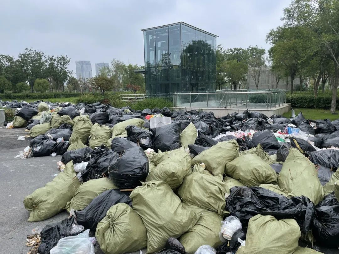 不远处的一个路口,被清理出的垃圾如同小山堆放在角落,堆放长度近20米,一名环卫工向记者诉苦“这还只是一晚上产生的垃圾,这种情况已经持续了快2个星期”。