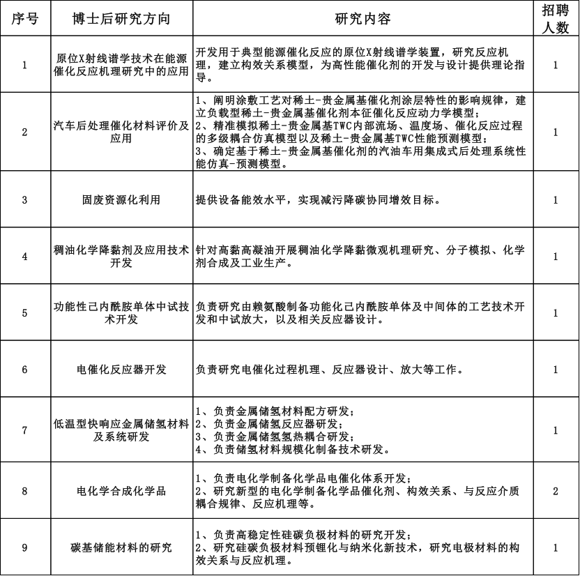我院全年招聘博士后研究人员,随时接受报名并组织遴选面试,择优录用。请将个人简历文件发送至邮箱:wang-jing.ripp@sinopec.com,邮件标题格式:应聘博士后-研究方向-姓名-联系电话-科学网。