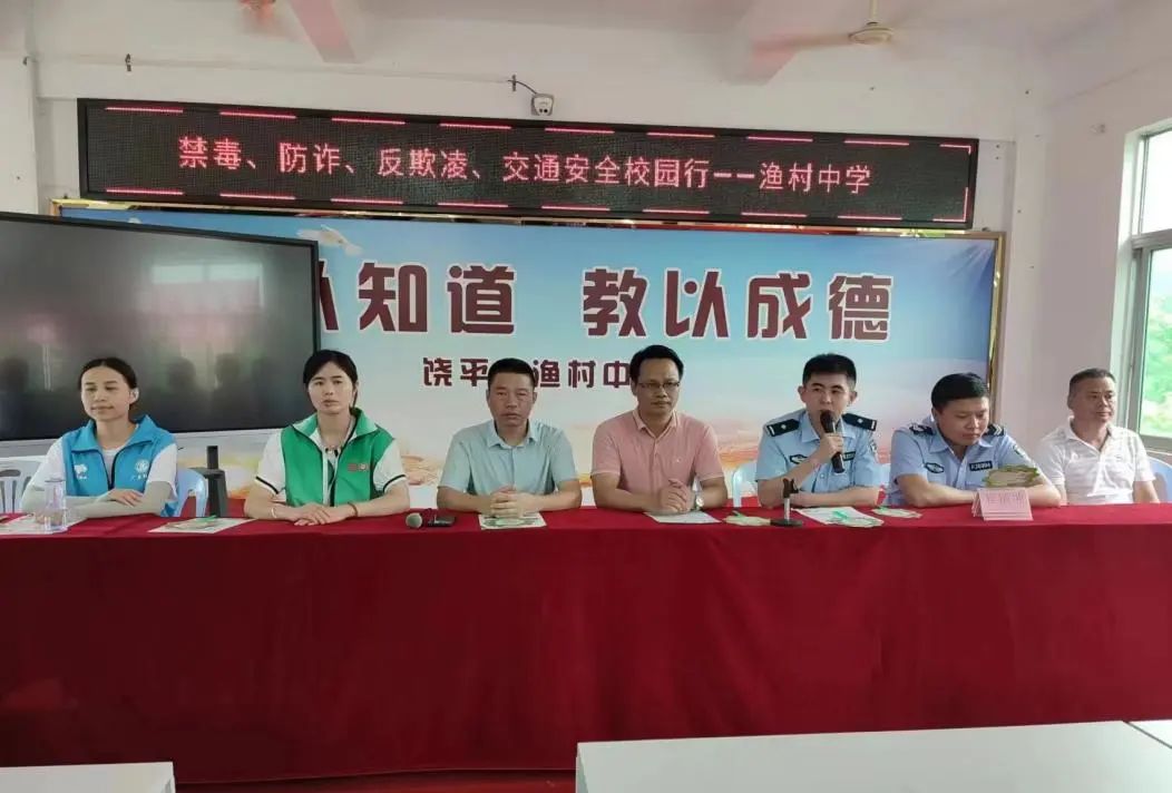 7月1日,在饶平县禁毒办的部署下,新圩镇禁毒办联合派出所、双百社工、启德社工在饶平县渔村中学开展“禁毒、防诈、反欺凌、交通安全校园行”宣传活动。
