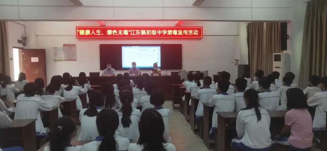 6月17日,江东镇初级中学给学生们上了一堂“健康人生﹒绿色无毒”禁毒宣传活动课。