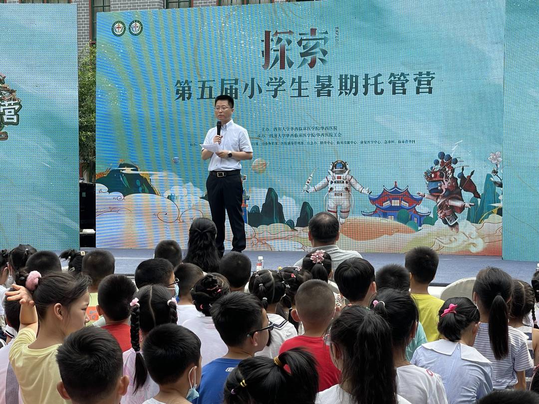 华西医院党委副书记申文武在致辞中说,今年是华西医院建院130周年,华西医院一直努力构建全周期关心关爱的“家”文化,为了丰富职工子女的暑期生活、解决职工暑期工作的后顾之忧,2017年至今已连续开办5届“小学生暑期托管营”(2020年因新冠疫情暂停),累计2480人次参加。今年的托管营特别邀请来自凉山州昭觉县的14名彝族小朋友,和华西医院职工子女一起享受欢乐暑期生活、感受百年华西文化。