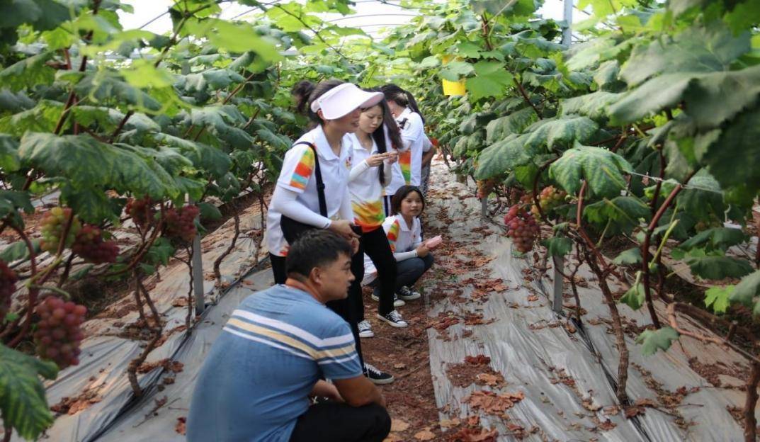 作为团岭村一大经济支柱的葡萄种植园成了此次活动的第二站。实践小分队参观并学习了葡萄园的种植模式,为了更好地宣传推进团岭村特色葡萄种植产业的发展,打响团岭村农特产品的知名度,志愿者们走进大棚,发挥各自所长,通过试吃、采摘、现场直播等多种方式收集各类素材,为后期宣传做了充分准备。