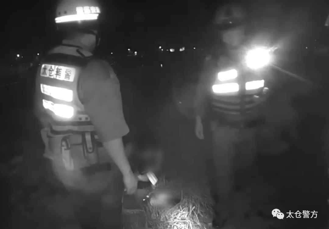 此时,太仓市公安局高新区派出所执勤警力闻讯到场,将随车携带的救生圈拴上绳子抛给刘奎乐。在救生圈的辅助下,刘奎乐和落水女子终于被成功拉到西侧坡度较低的岸上。