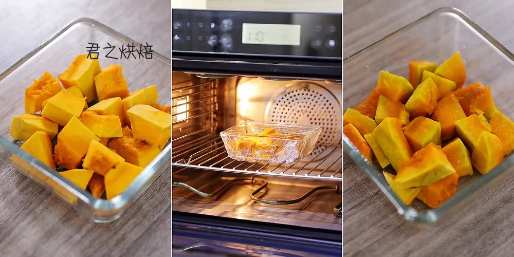 再强调一下,要用水分少的贝贝南瓜这类南瓜,才能得到稠厚的南瓜泥哦。
