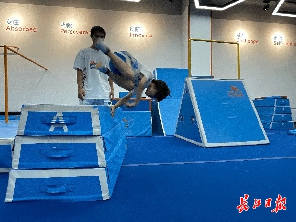 “挑战、自信、自由、友善”是悬挂在武汉勇士跑酷联盟墙上的运动理念。据介绍,该训练营常规收费一年约8000元,孩子练跑酷需要坚持循序渐进的科学训练方法,目前国内跑酷运动并无现成教材。目前,3名大学生利用自身所学体育专长,结合实践摸索,创造了一套行之有效的教学方法。