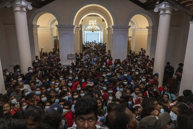 冲入总统府的斯里兰卡民众。图:视觉中国