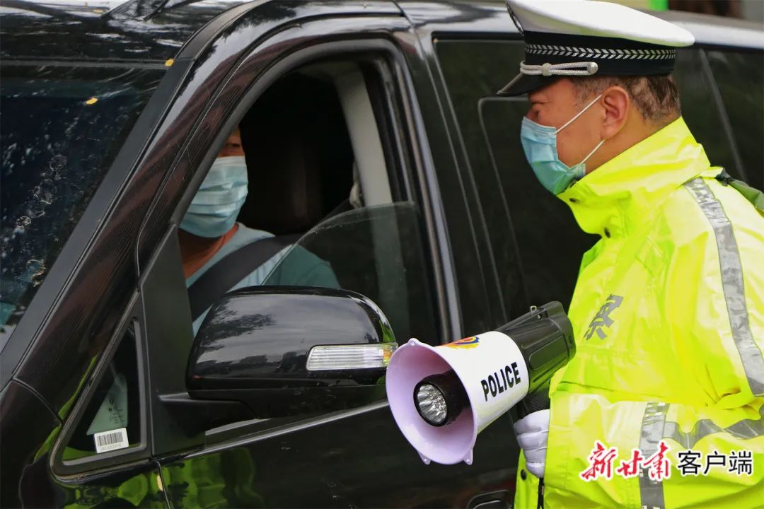 城关交警对辖区外出的车辆、人员加强监督检查。(新甘肃·甘肃日报记者 李永萍 | 图片由城关大队提供)