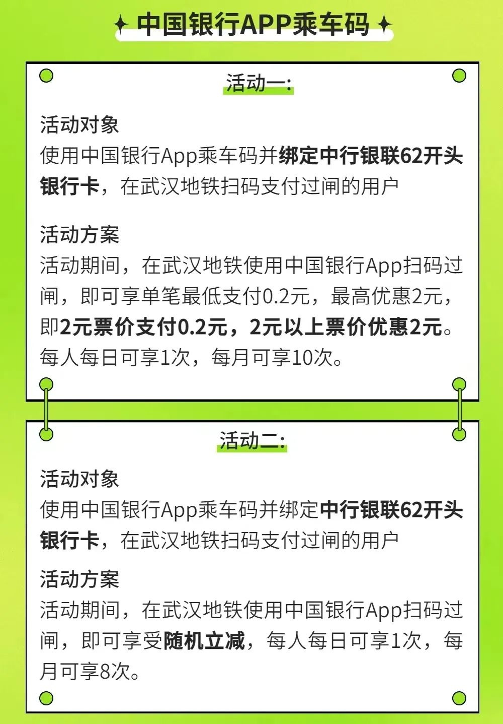 4.武汉通卡绑定成功当月开始参与乘车优惠活动,未绑定的武汉通卡不参与乘车优惠活动;